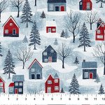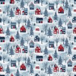 Village Folk FLANNEL Large Houses Light Blue Multi F28823-42 - Northcott Fabrics - shipping July 2026