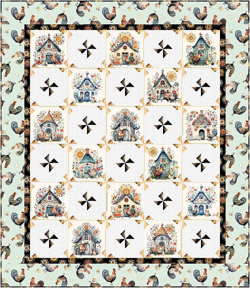 Poultry in Motion Rochester Lap Size Quilt Kit - includes fabric by QT Fabrics and Panel Perfect 3-yard Quilts Quilting BOOK by Donna Robertson of Fabric Cafe
